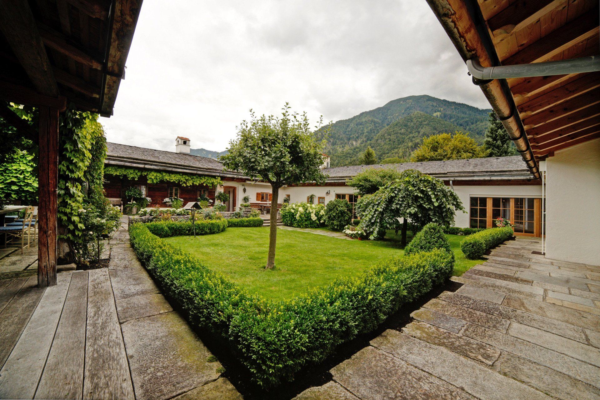 Exquisite Lage in Rottach-Egern. Bestehend aus Ost- und Westflügel, verbunden durch die Schwimmhalle, umrahmt das großzugige Gebäude den zauberhaften Garten.