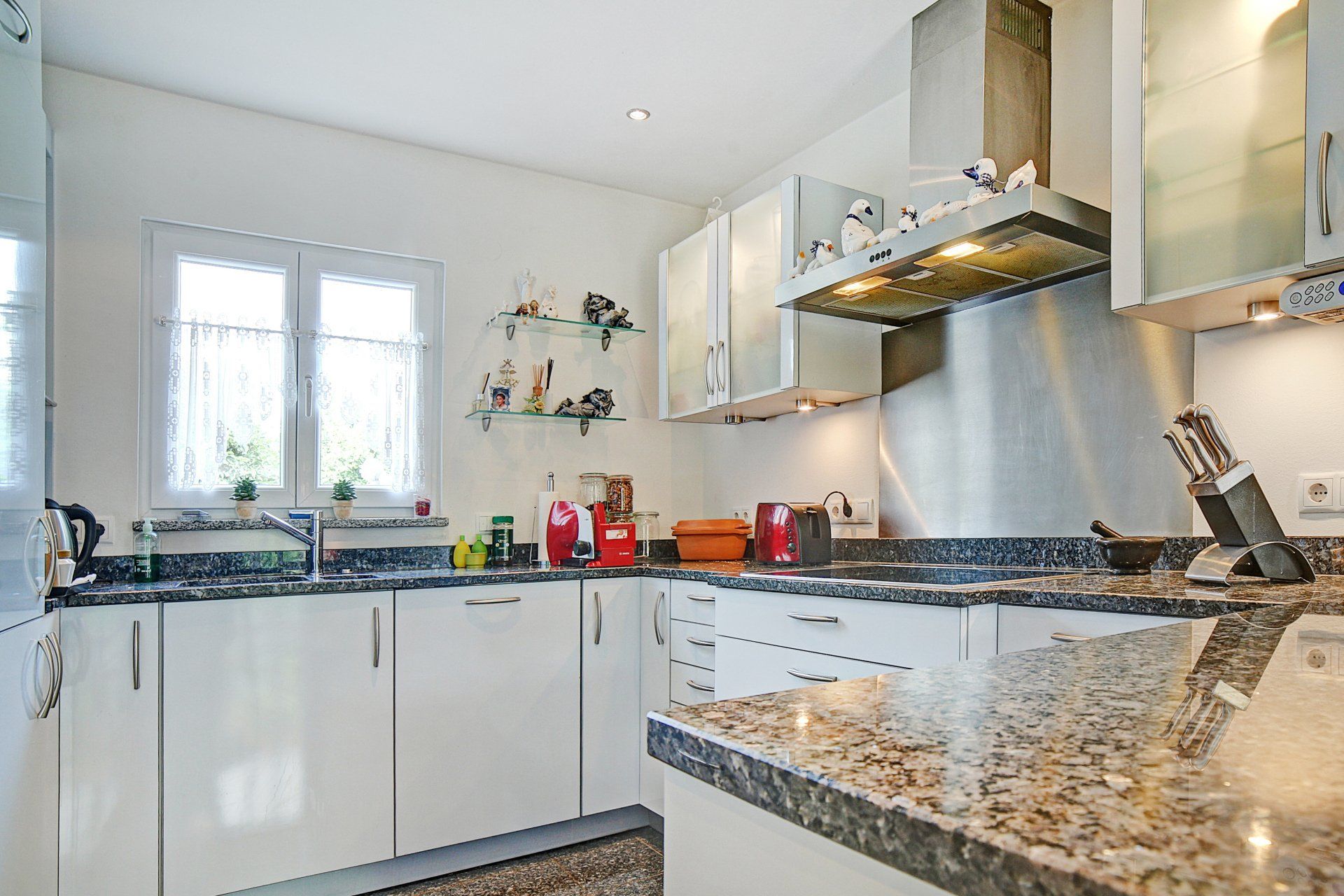 Im Jahr 1994 in massiver Ziegelbauweise errichtet und ständig modernisiert präsentiert es sich in hervorragender Qualität mit großen, hellen Räumen, hochwertiger Ausstattung und ein paar besonderen Highlights wie z.B. einem beheizbaren Außenpool, einer Dampfdusche und einer komplett unterkellerten Garage.